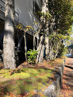 庭に咲いているのは柊の花です。今年はたくさん花をつけて、清々しい香りが庭中に満ちています。二階の窓を開けても香ってきます。この匂いを嗅ぐと、晩秋の頃の色々な思い出が蘇ります。